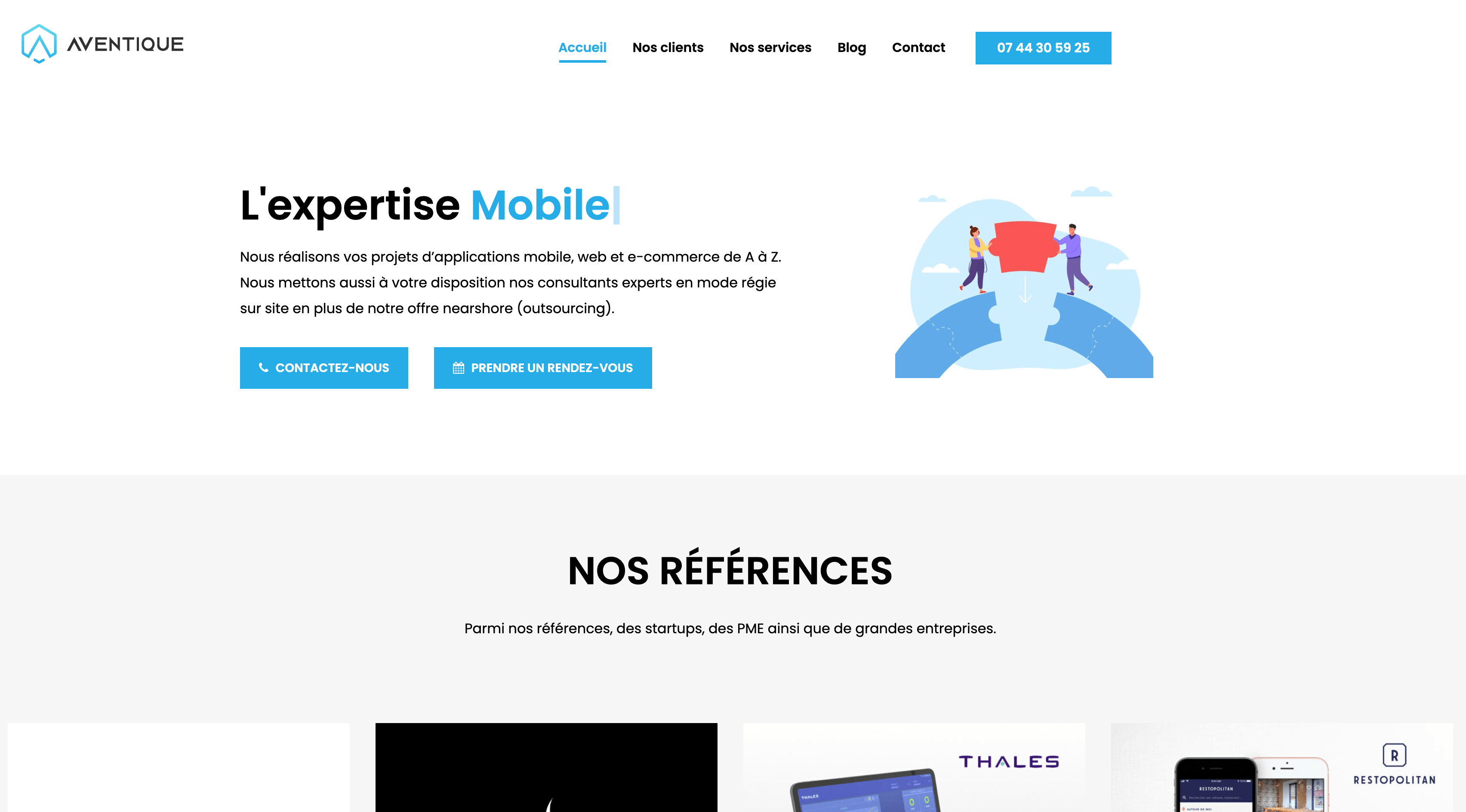 Aventique est une agence de développement React Native. Elle propose des services allant de la conception et du design au développement et à la maintenance d'applications mobiles, web et e-commerce. Aventique se distingue par son expertise en React Native, Flutter, Swift, Java et Kotlin pour le développement d'applications mobiles. Elle offre également des services de conseil IT et d'assistance technique, ainsi que des solutions de nearshoring IT pour optimiser les coûts.