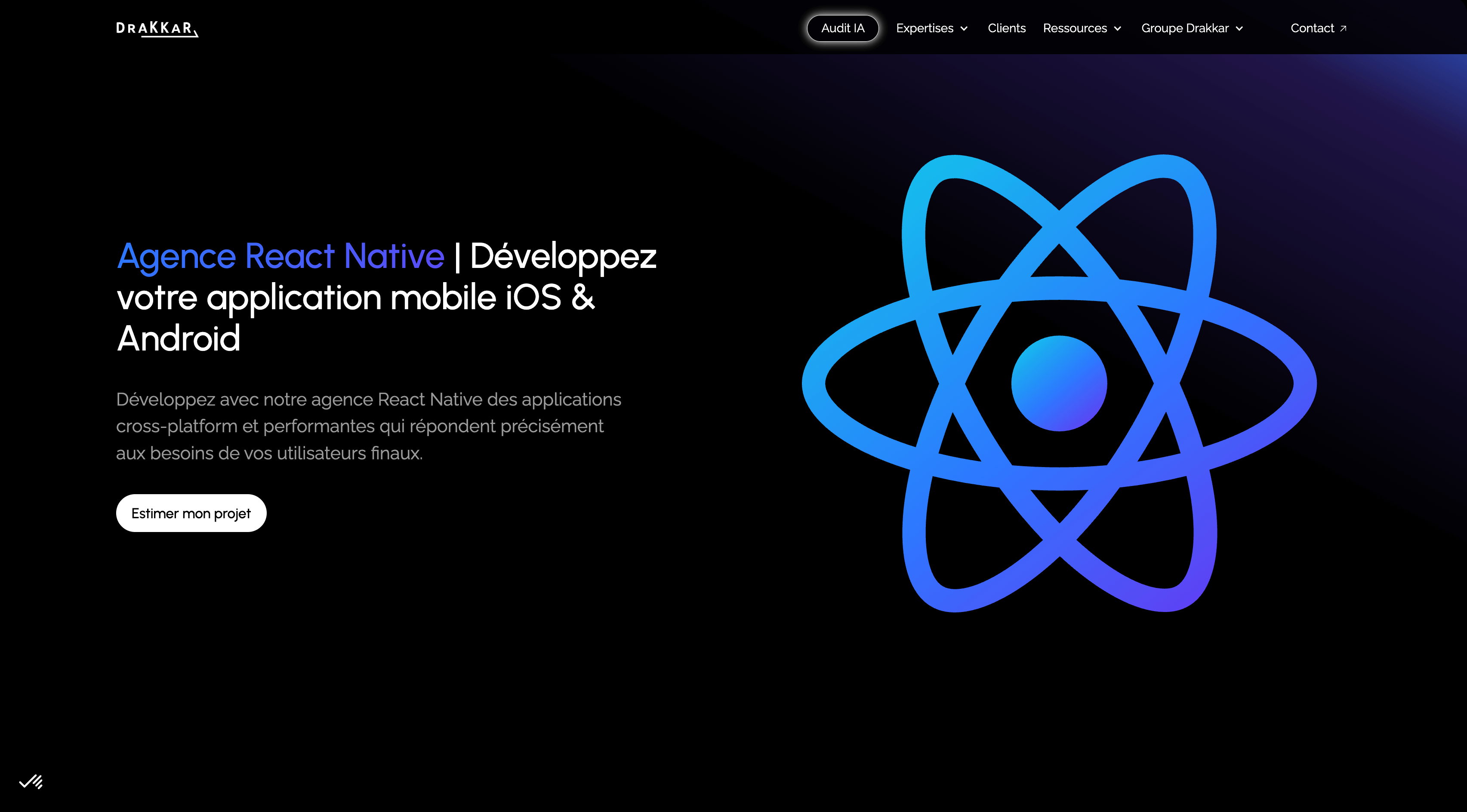Drakkar est une agence spécialisée dans le développement d'applications mobiles avec React Native. Elle réunit des développeurs experts capables de concevoir des solutions multiplateformes performantes et adaptées aux besoins spécifiques des utilisateurs finaux. En maîtrisant l'ensemble de la chaîne de production, de la conception à la mise en ligne, Drakkar garantit des résultats durables et optimisés.