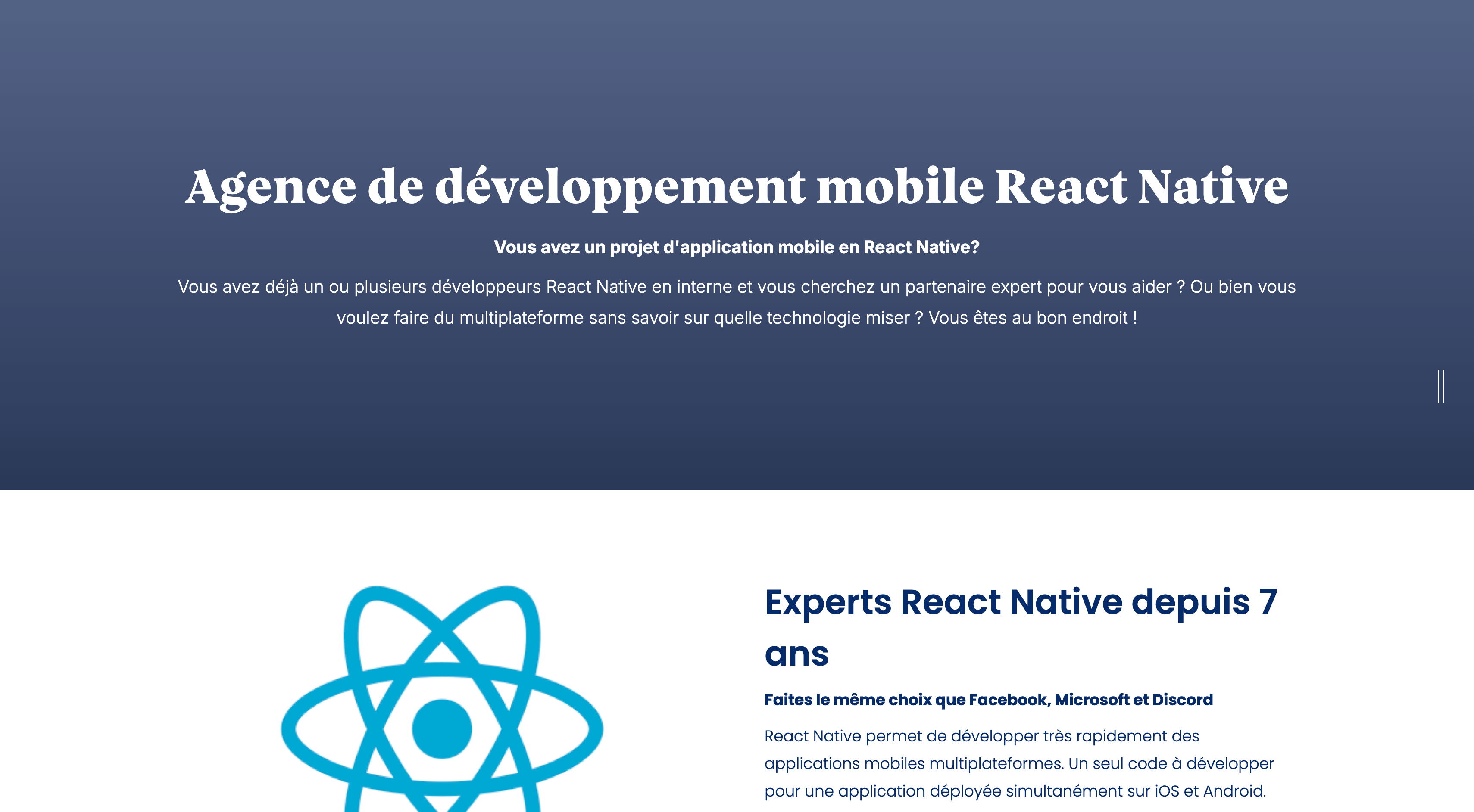 ✅ Expertise en React Native : Plus de 7 ans d'expérience dans le développement d'applications mobiles multiplateformes.