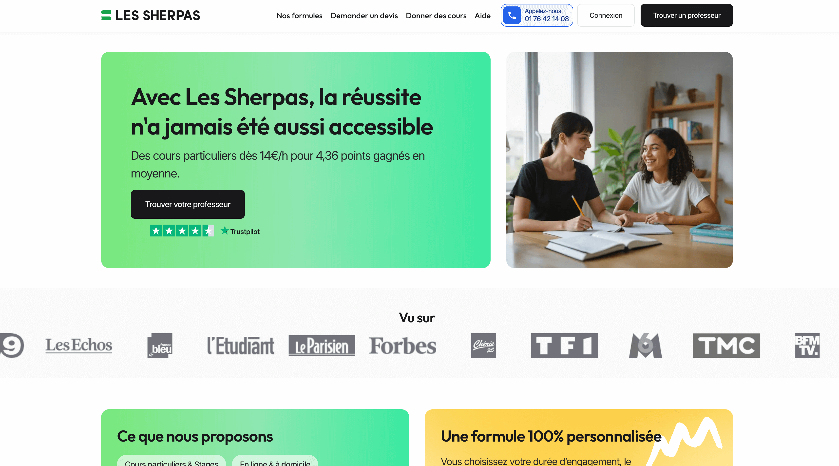 Les Sherpas ne fonctionnent pas comme un marketplace basique. Leur ambition est de créer la meilleure plateforme pédagogique de France, avec une approche qualitative et humaine.