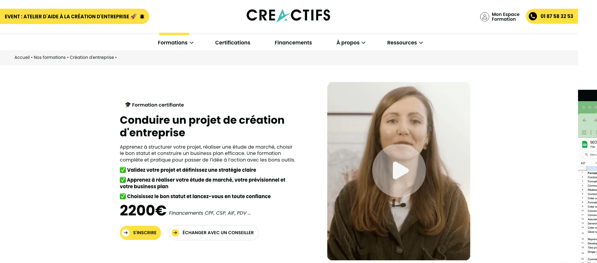 Créée par Matthieu Douchy, fondateur de CréActifs, cette formation 100 % en ligne s’adresse à toutes les personnes désireuses de concrétiser leur projet entrepreneurial.