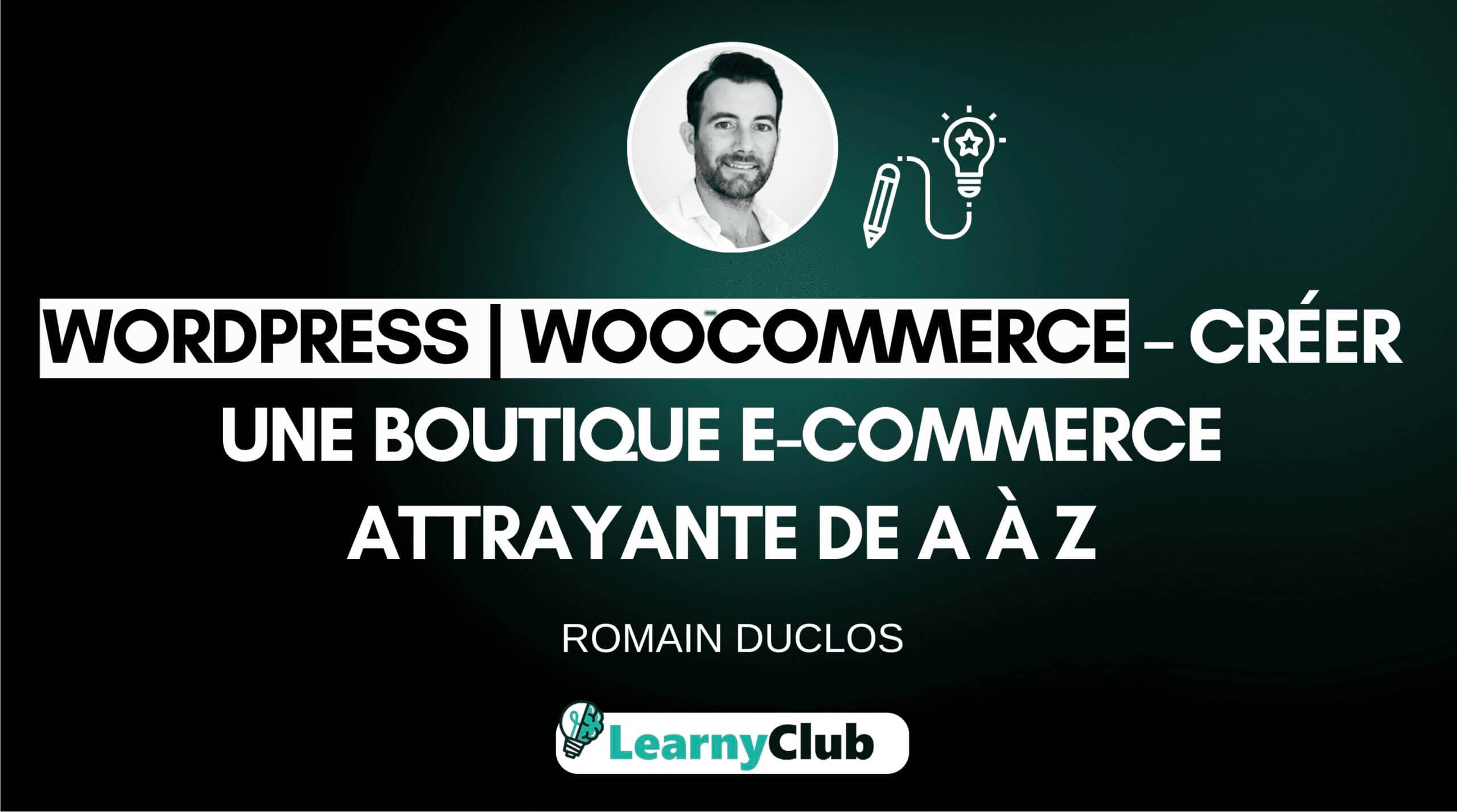 Proposée par Romain Duclos, expert en graphisme et création de sites web depuis plus de 15 ans, cette formation en ligne de 6 h 15 vous accompagne dans la création complète d’une boutique e-commerce à l’aide de WordPress et WooCommerce.